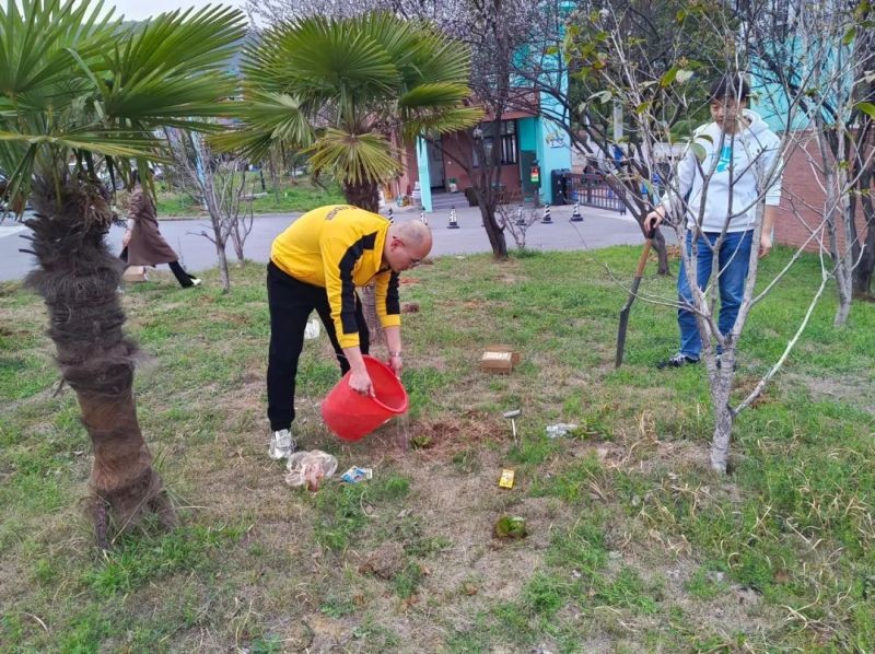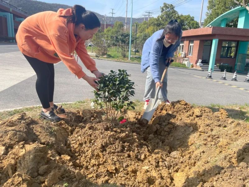 在植樹節到來之際,各部門的人員紛紛行動起來,有的挖土,有的扶苗,有的提水,有的澆苗,有的清理枯枝,有的清除雜草,場面好不熱鬧。