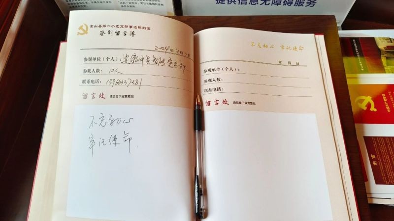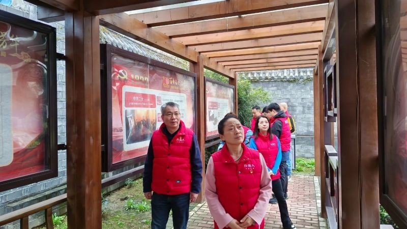 活動的第二站,我們來到了含山縣第一黨支部事跡陳列室。該陳列室位于省級美麗鄉村中心村福山村張什一自然村,我們首先參觀了室外的黨建長廊,瀏覽了從中共一大到中共二十大的歷次全會召開的情況,隨后來到陳列館內,館內講解員為我們作了詳細的介紹——分為前言、星星之火、崢嶸歲月、燎原之勢以及結束語這5個模塊,同時也向我們展示了原市委黨委珍藏資料以及革命歷史時期、建設發展時期的相關圖片、文字資料,呈現了含山縣第一黨支部的發展歷史,讓我們共同重溫了那段可歌可泣的歷史。最后,我們一同在陳列室前合影留念,結束此次的主題黨日活動。