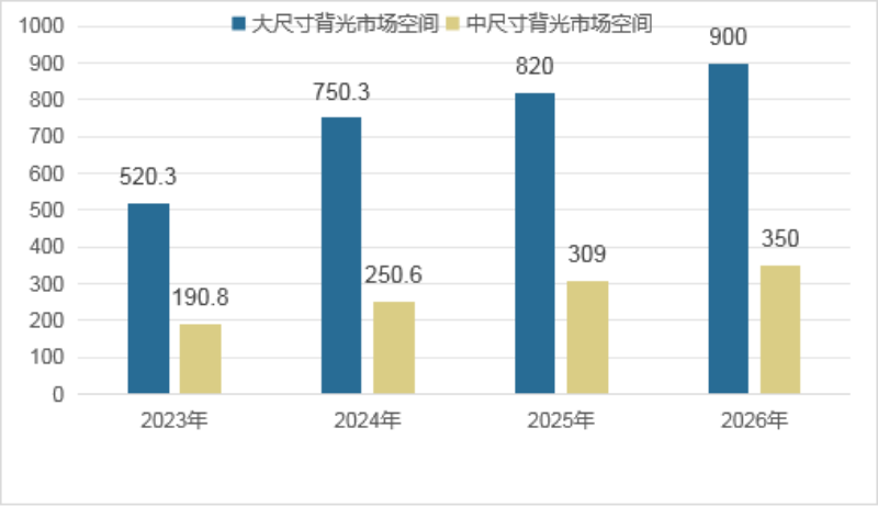 Mini LED性能更佳,未來將爆發式增長,預計2026年背光模組市場將達到1250億元。